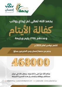 حمد الله تعالى تم إيداع #رواتب #كفالة_الأيتام وعددهم (119) يتيم ويتيمة بدعم من منصة إحسان